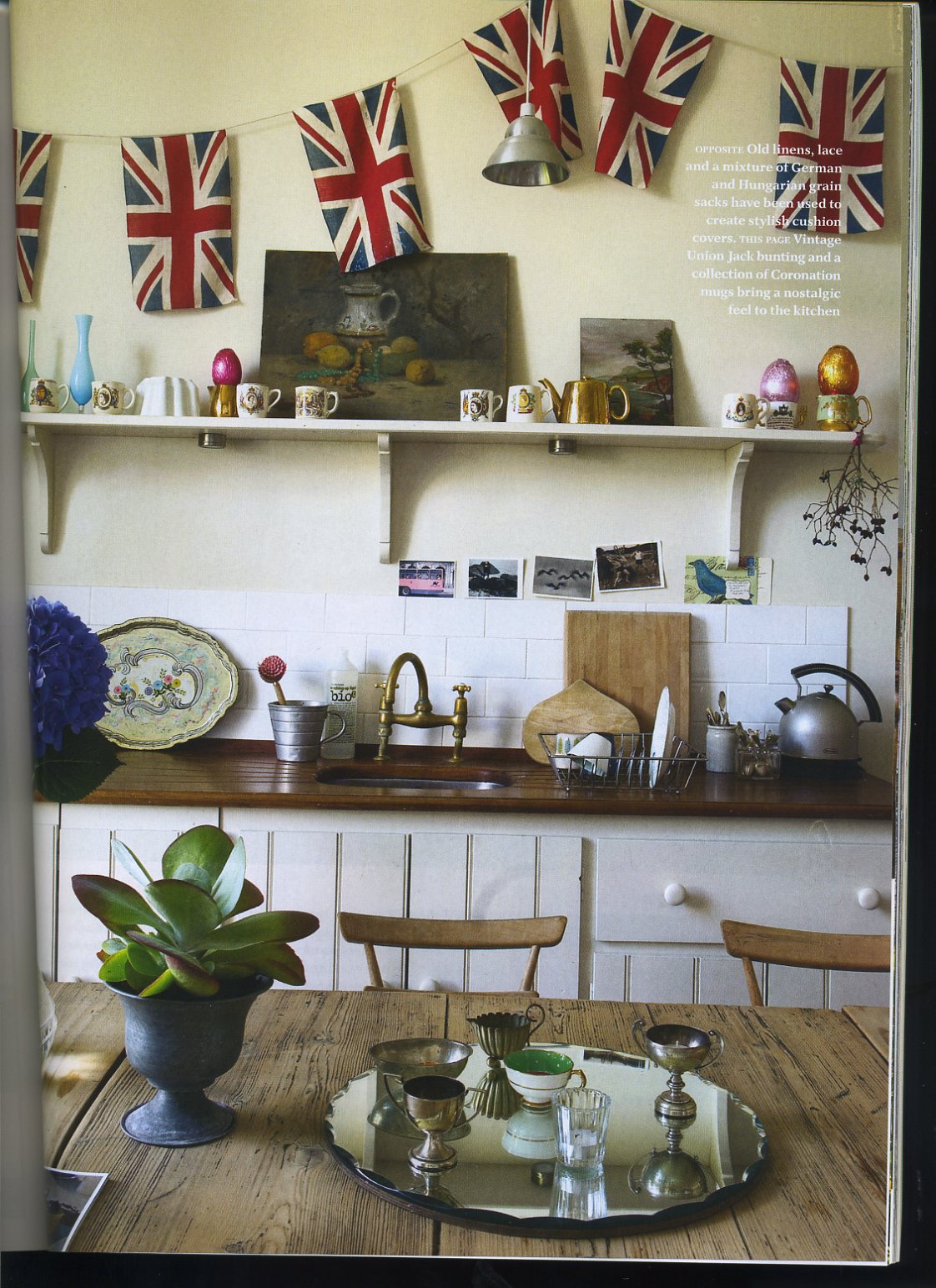 I enjoyed a peek inside this Suffolk farmhouse home (Country Living, Aug. 2010). The owners are Sara and Hugh Petre, who have a vintage textile upholstery company. I like the way they've incorporated their collection of textiles into their home. Below are a couple of examples from their company's website, which shows examples of their style in reupholstering antique furniture. (photos: Claire Richardson in UK Country Living)